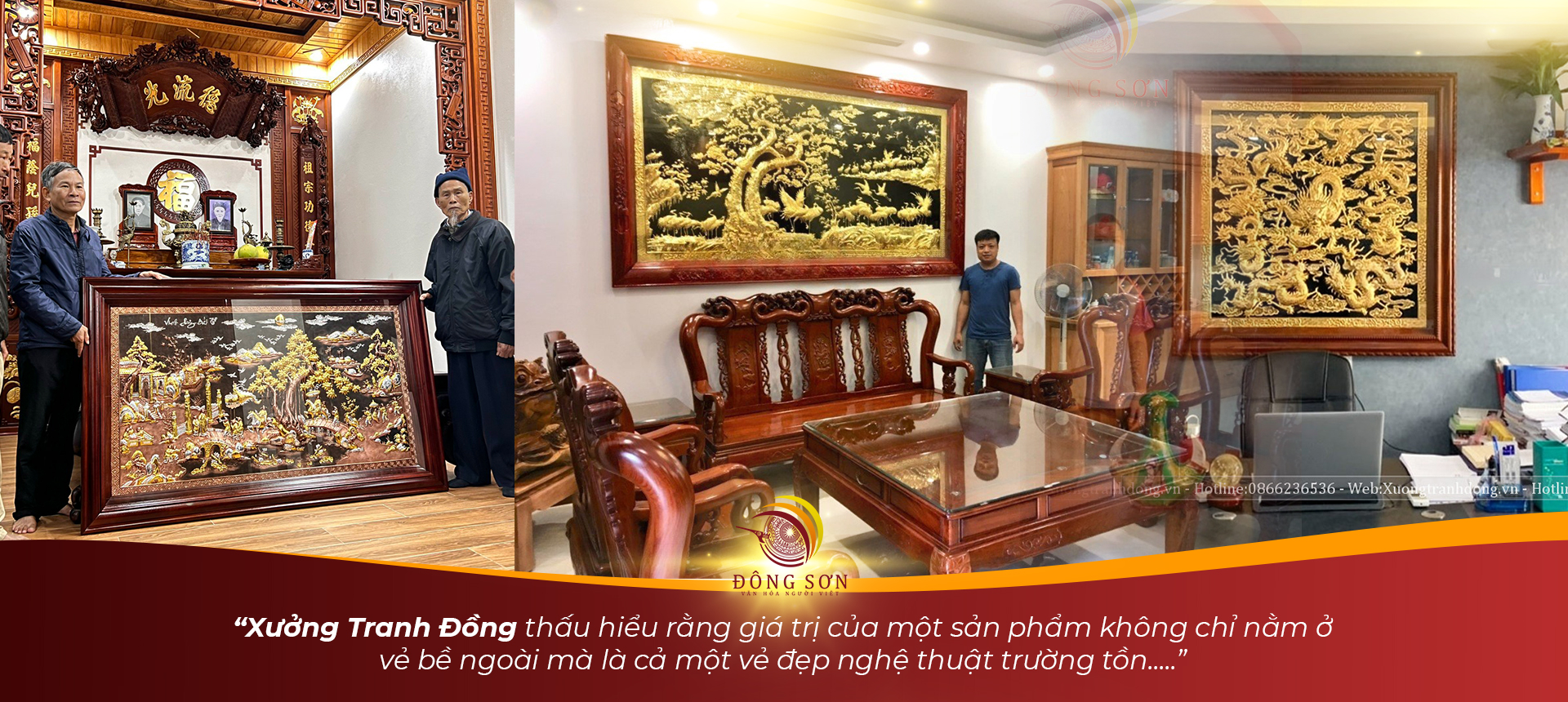 Tranh đồng Thuận Buồm Xuôi Gió đồng đỏ dát vàng bạc, kích thước 170*90cm