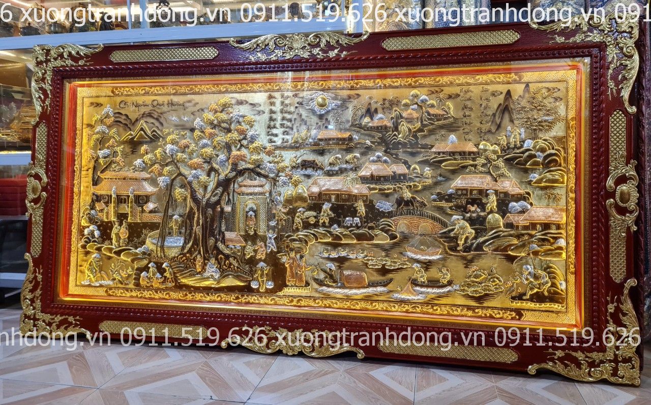 Tranh Cội Nguồn Quê Hương bằng đồng nền vàng