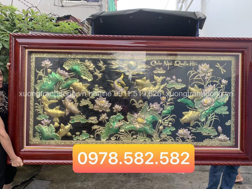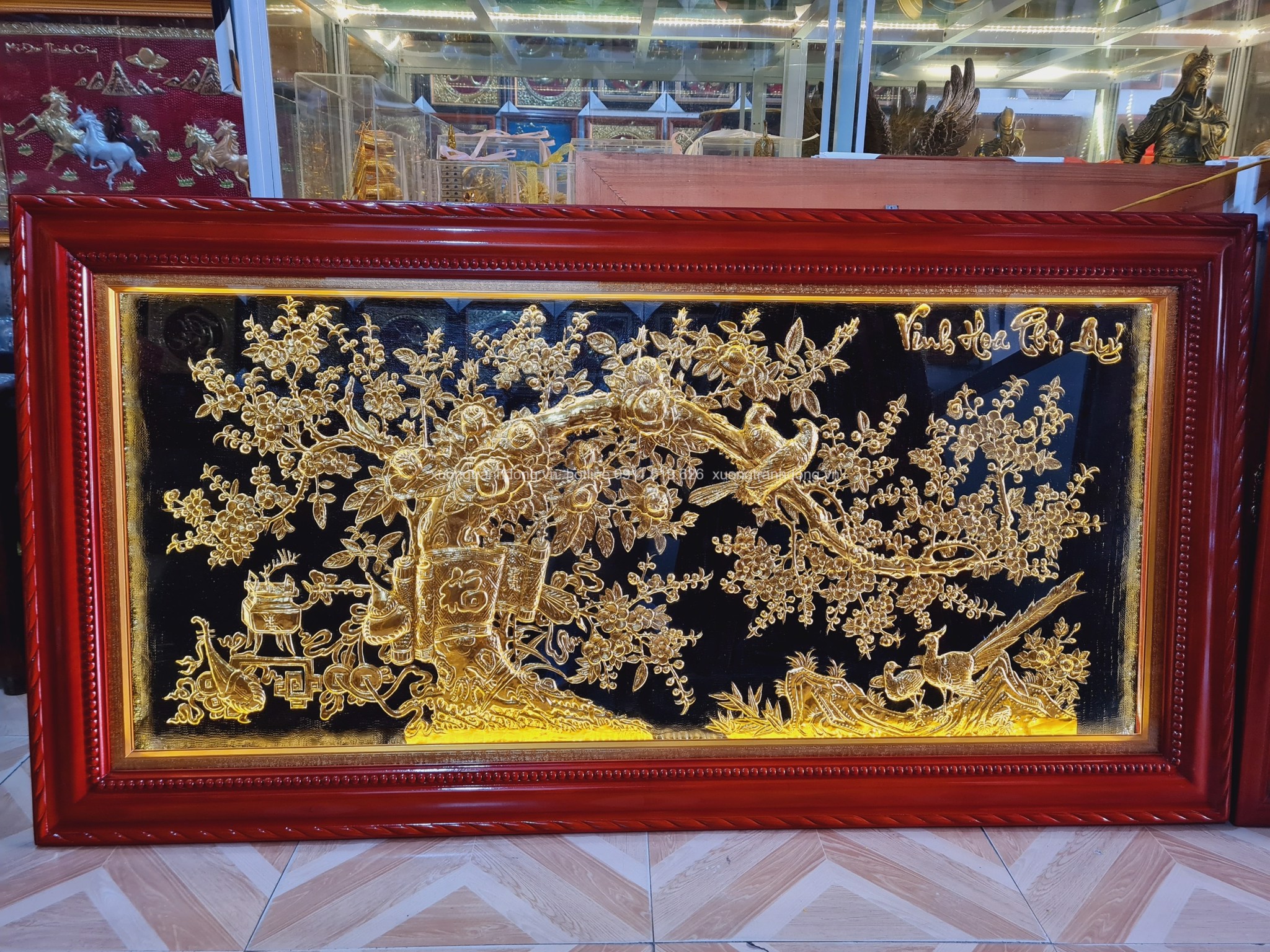 - Xưởng Tranh Đồng có đầy đủ mẫu mã, kích cỡ. Kích thước phổ thông là 170x90, 107x197, 2m3x1m2 hoặc 2m55x1m55 và quý khách có thể đặt kích thước theo yêu cầu để phù hợp nhất với tuổi mệnh hay hoặc hướng treo của gia chủ và không gian phòng.