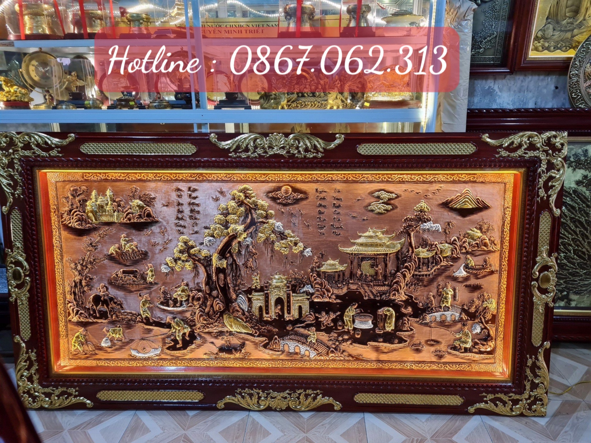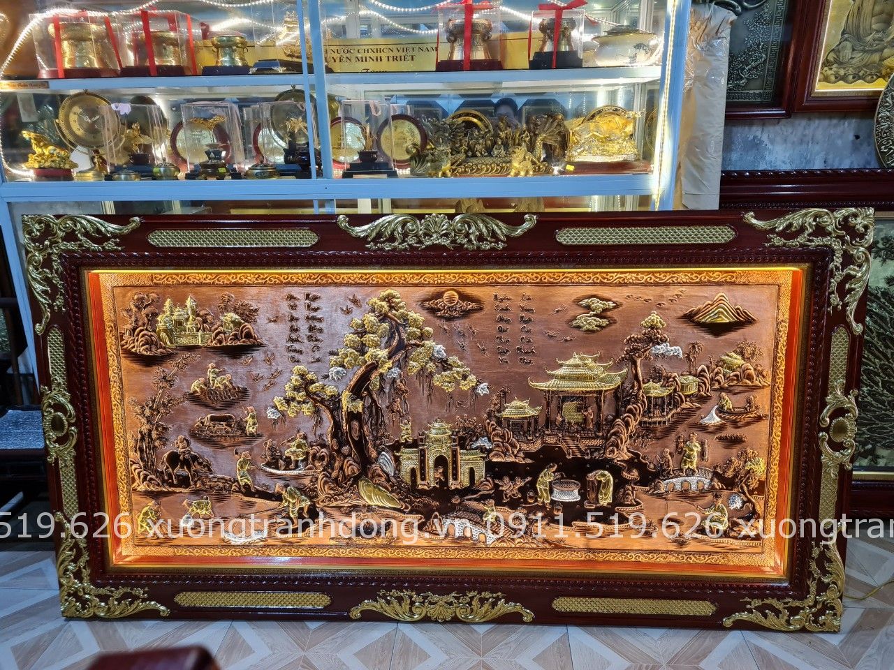 Tranh Đồng Quê chất liệu đồng đỏ kích thước 170x90