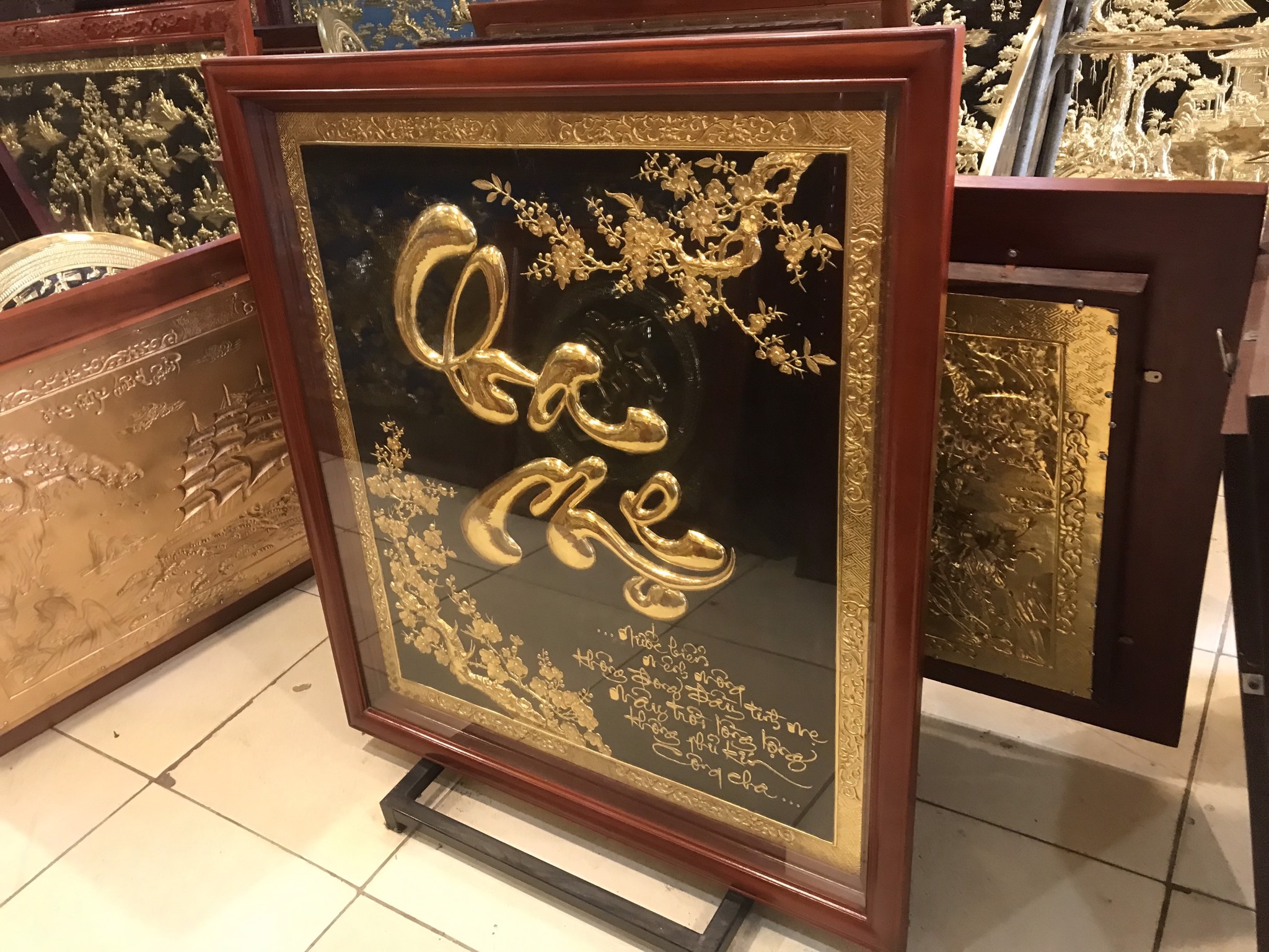 Tranh chữ Cha Mẹ bằng đồng mạ vàng 9999