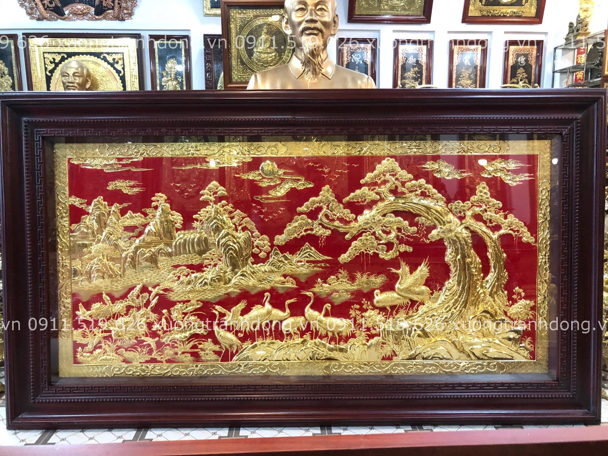Tranh Tung Hac bằng đồng nền đỏ dát vàng sang trọng